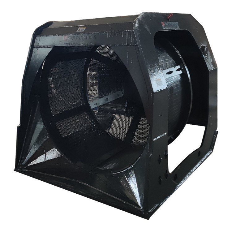 Il secchio di screening Chinatools è dotato di un sistema di maglie intercambiabili attorno alla circonferenza interna del tamburo e di sezioni intercambiabili nell'area conica posteriore del tamburo.